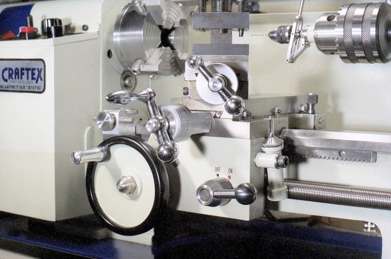 ( Note that the tiny Taig lathe actually handles longer work than the Minilathe. It is over 9 inches between centers. When using the accessory risers, it can swing a 6 1/2" wheel. However the Taig is a precision lathe and originally designed for lighter work.)