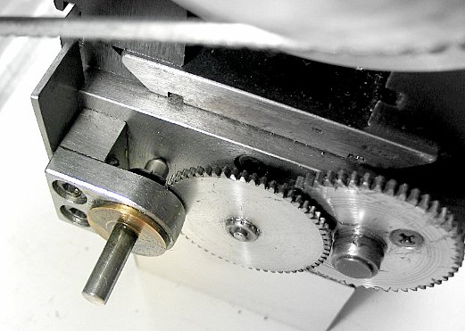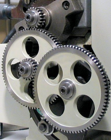 The steel gears were very roughly finished on the sides, but the shaft holes were accurately placed and the teeth were nicely machined. I decided to enhance their appearance by re-machining all the sides, adding depressions to the larger wheels. I painted the depressions with matching paint and on both sides of each wheel rim I stamped new legible numbers showing the how many teeth are on each changewheel.